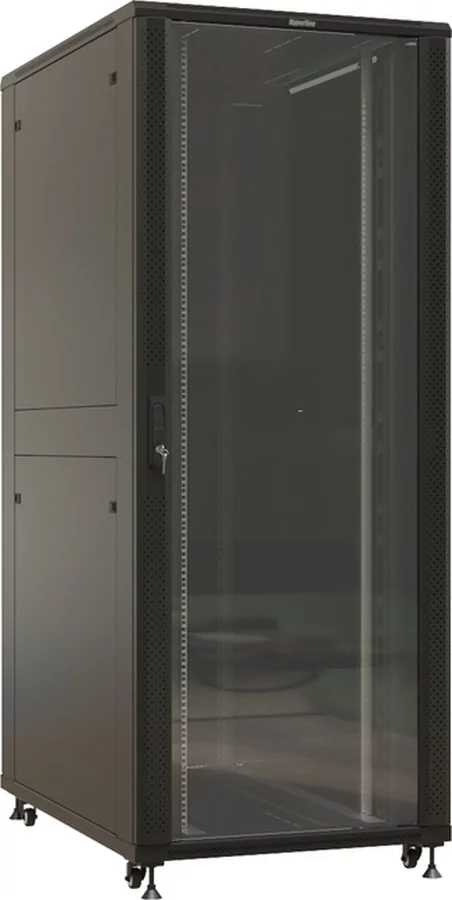 Шкаф серверный Hyperline (TTBR-4281-AS-RAL9004) напольный 42U 800x1000мм пер.дв.стекл задн.дв.спл.стал.лист 4 бок.пан. 1000кг черный 910мм IP20 сталь