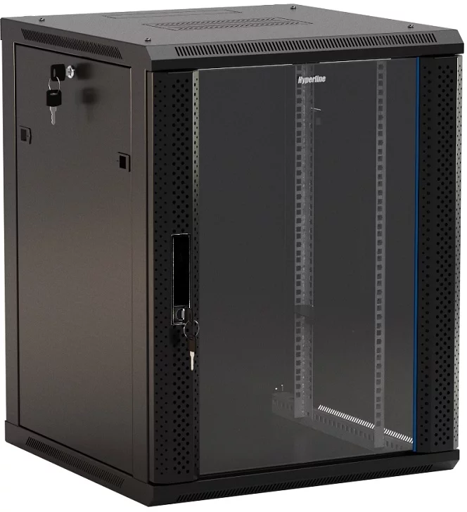 Шкаф коммутационный Hyperline (TWB-2766-GP-RAL9004) настенный 27U 600x600мм пер.дв.стекл 2 бок.пан. 60кг черный 520мм 49.9кг 180град. 1304мм IP20 сталь