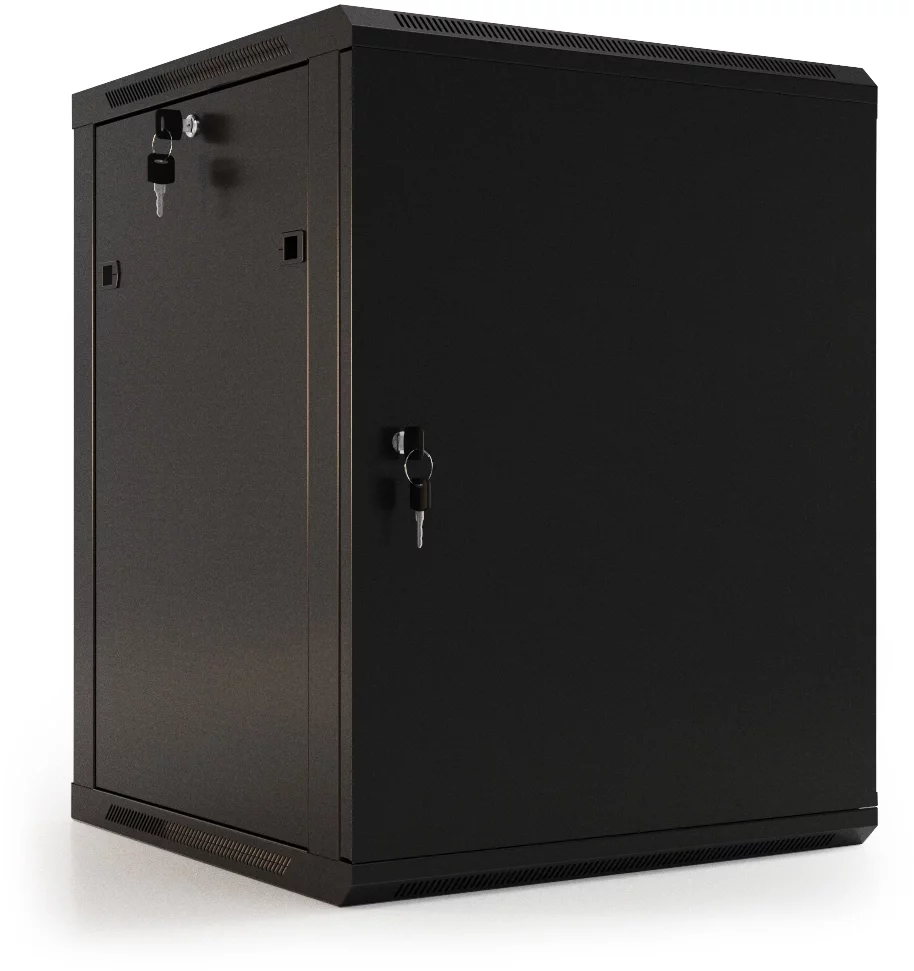 Шкаф коммутационный Hyperline (TWB-2766-SR-RAL9004) настенный 27U 600x600мм пер.дв.стал.лист 2 бок.пан. 60кг черный 520мм 180град. 1304мм IP20 сталь