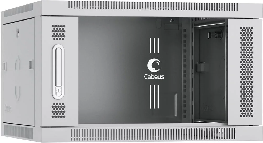 Cabeus SH-05F-6U60/ 35 Шкаф телекоммуникационный настенный 19" 6U 600x350x368mm (ШхГхВ) дверь стекло, цвет серый (RAL 7035) (SH-05F-6U60/35)