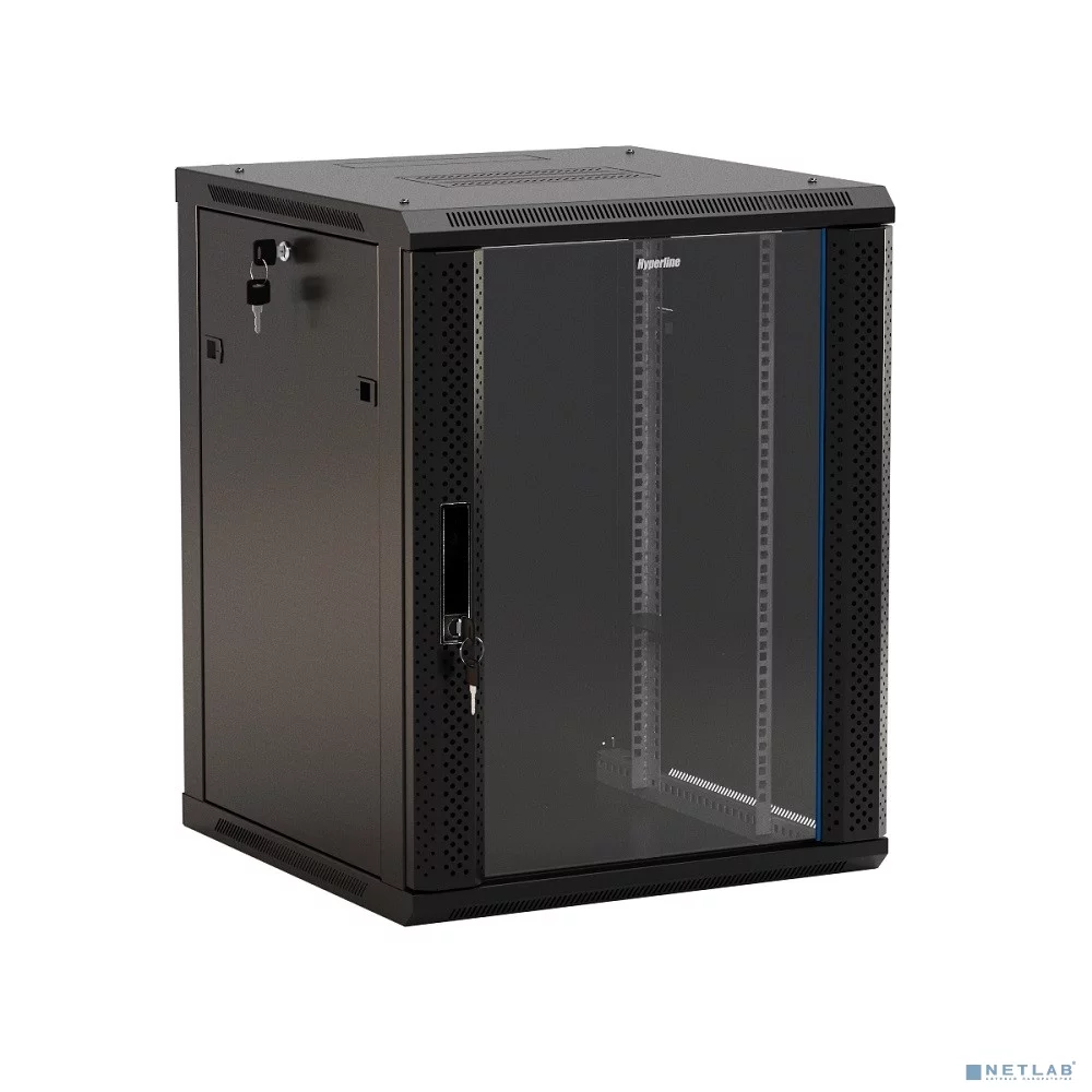 Hyperline TWB-1245-GP-RAL9004 Шкаф настенный 12U, 650x600х450мм, стеклянная дверь с перфорацией по б 12U, 650x600х450мм, стеклянная дверь с перфорацией по бокам, ручка с замком, цвет черный (RAL 9004) (разобранный)