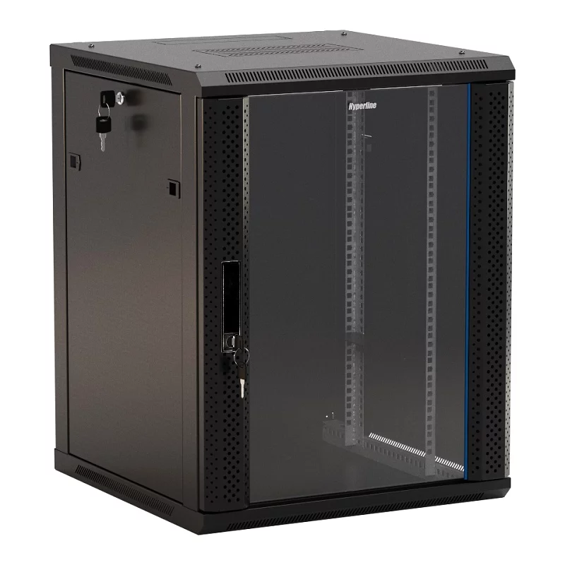 Hyperline TWB-1266-GP-RAL9004 Шкаф настенный 12U, 650x600х600мм, стеклянная дверь с перфорацией по б 12U, 650x600х600мм, стеклянная дверь с перфорацией по бокам, ручка с замком, цвет черный (RAL 9004) (разобранный)