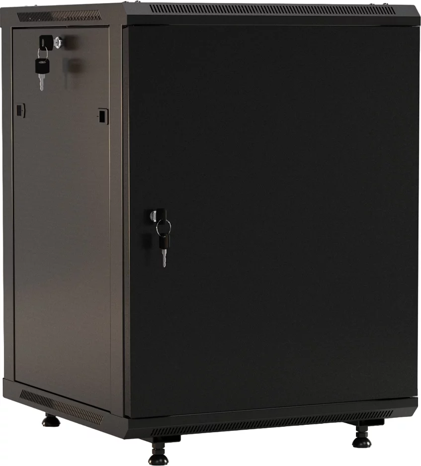 Шкаф коммутационный Hyperline (TWB-FC-1266-SR-RAL9004) настенный 12U 600x600мм пер.дв.металл 2 бок.пан. задн.дв.спл.стал.лист 60кг черный 650мм IP20 сталь