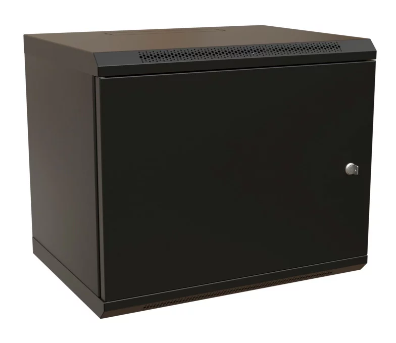 Шкаф коммутационный WRline (WR-TW-1545-SR-RAL9004) настенный 15U 600x450мм пер.дв.металл 2 бок.пан. направл.под винты 60кг черный 370мм 775мм IP20 сталь