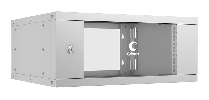 Cabeus WSC-05D-4U55/ 45 Шкаф телекоммуникационный настенный 19" 4U, серия LIGHT разборный, дверь стекло, цвет серый (WSC-05D-4U55/45)