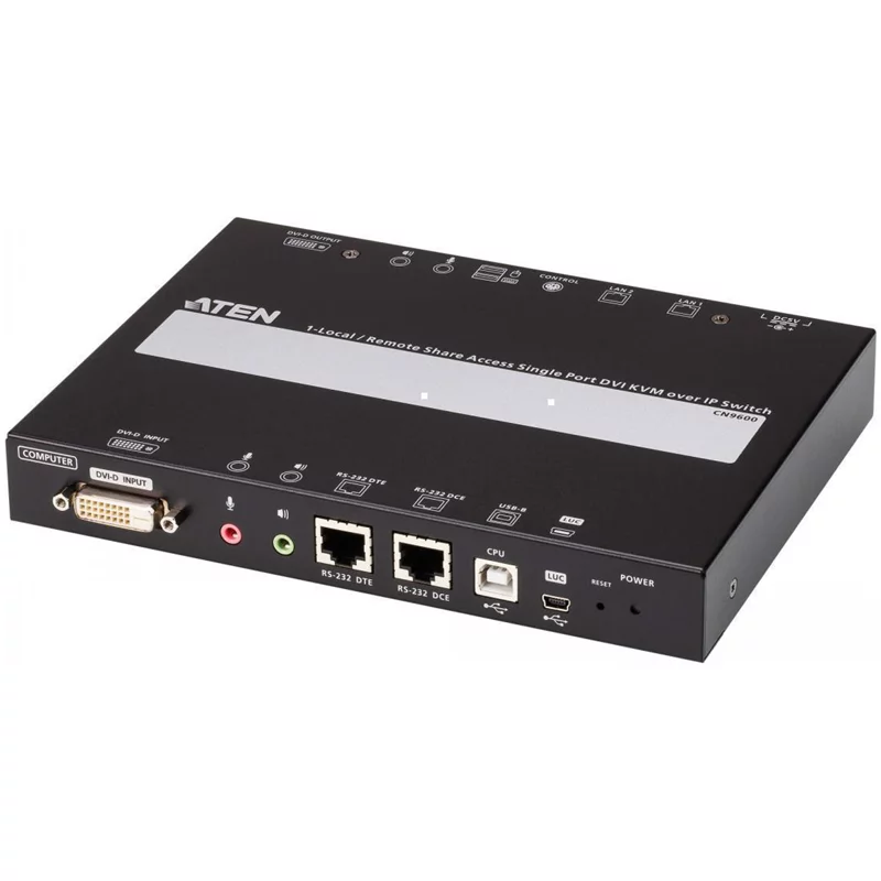 Удлинитель, KVM+DVI, управление по IP, Rackmount/ Desktop, 10/ 100 Base-T, с KVM-шнурами PS2 1х1.2м.;USB 1x1.2м., TCP/ IP, (Virtual Media;WIN98SE/ ME/ 2000/ XP/ FREE-BSD/ LINUX 7.0 или выше;1600x1200 60Hz;)/ (CN9600)
