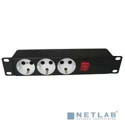 Блок силовых розеток 10" без шнура с выключателем, 3 розетки, цвет черный (БР-3П-10-9005)