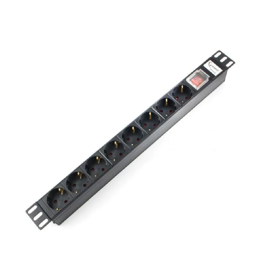 Gembird [MAX19-EH8-0] Блок 8 евророзеток с защитой для 19". C14. MAX-19. 16A. 1U.