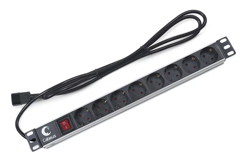 Cabeus PDU-8P-2IEC Блок евророзеток для 19" шкафов, гориз., 8 розеток, 10 A, выключатель, алюминиевый корпус, шнур 2 м, вилка IEC 320 C14