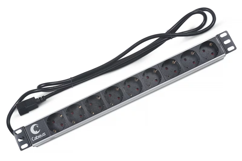 Cabeus PDU-9P-2IEC Блок евророзеток для 19" шкафов, гориз., 9 розеток, 10 A, без выключателя, алюминиевый корпус, шнур 2 м, вилка IEC 320 C14
