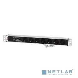 Блок розеток Rem-10 без шнура с фил. и инд., 7 Schuko, вход IEC 60320 C14, 10A, алюм., 19" (R-10-7S-FI-440-Z)