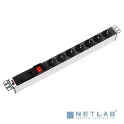 Блок розеток Rem-16 с выкл., 7 Schuko, вход IEC 60320 C20, 16 A, алюм., 19" (R-16-7S-V-440-Z)