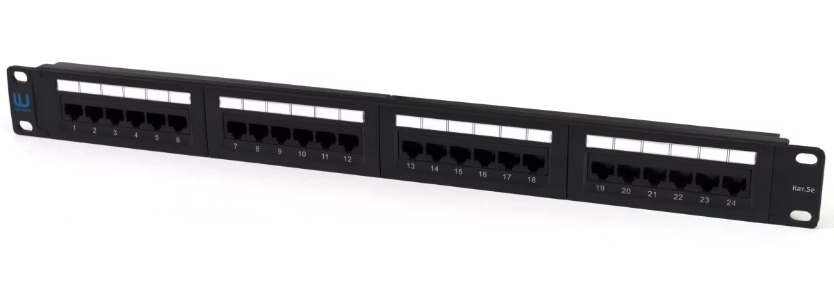Панель коммутационная, UTP, Кат.5e, 24 порта, 19", 1U, с кабельным организатором (ЛЮ-ПКС-5E.24.1Р)