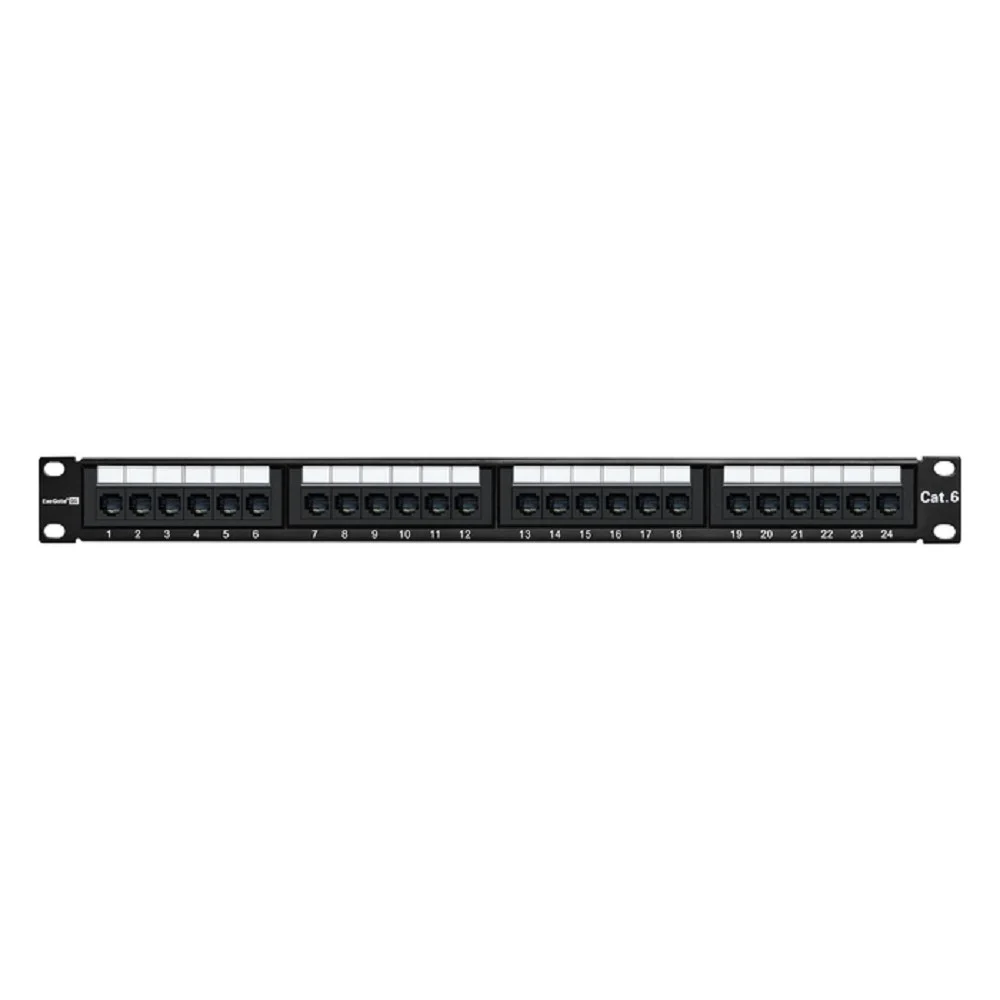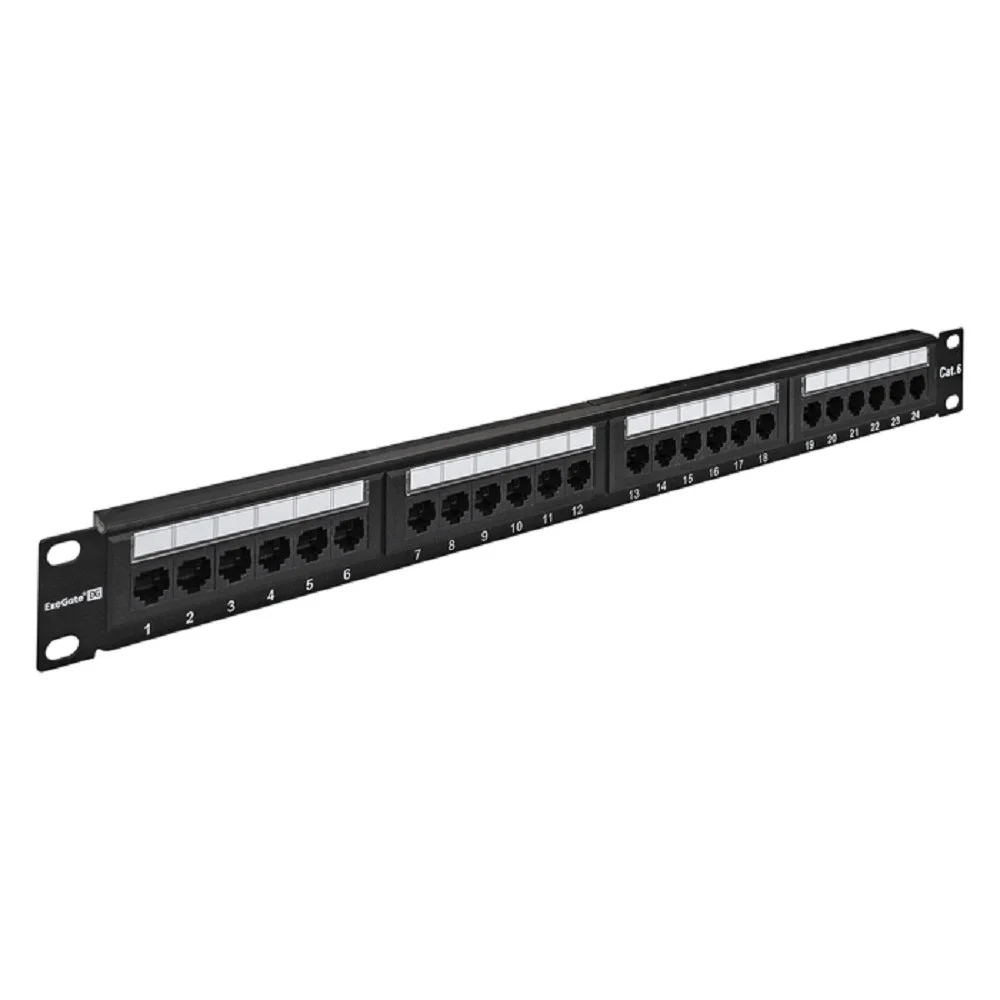 Exegate EX281080RUS Патч-панель UTP 19" 24 port кат.6 ExeGate разъём KRONE&110 (dual IDC), 1U, RoHS, цвет черный
