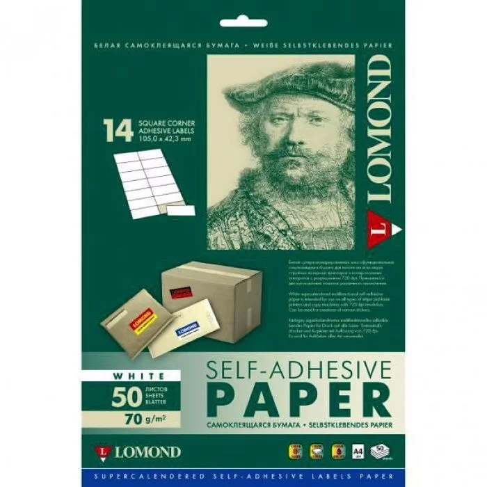 Самоклеящаяся бумага LOMOND универсальная для этикеток, A4, 14 делен. (105 x 41 мм), 70 г/ м2, 50 листов (2100085)
