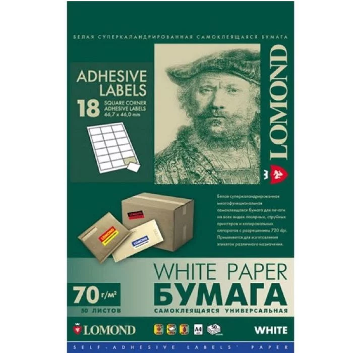 Самоклеящаяся бумага LOMOND универсальная для этикеток, A4, 18 делен. (66.7 x 46 мм), 70 г/м2, 50 листов (2100135)