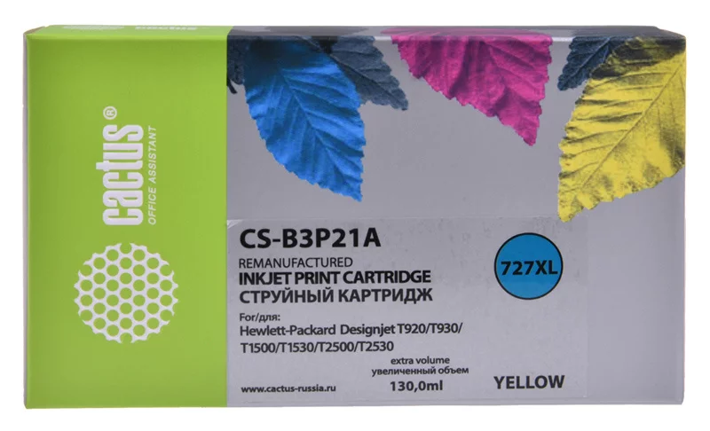 Картридж струйный Cactus №727 CS-B3P21A желтый (130 мл)