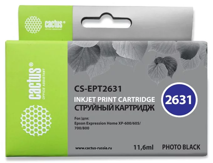 Картридж струйный Cactus CS-EPT2631 26XL фото черный (11.6мл) для Epson Expression Home XP-600/605/700/800 с чипом