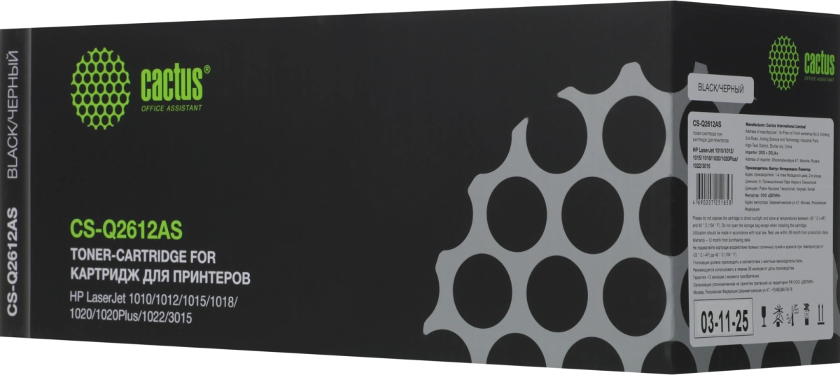 Картридж лазерный Cactus CS-Q2612AS Q2612A черный (2000стр.) для HP LJ 1010/1012/1015/1018/1020/1020Plus/1022/3015/3020