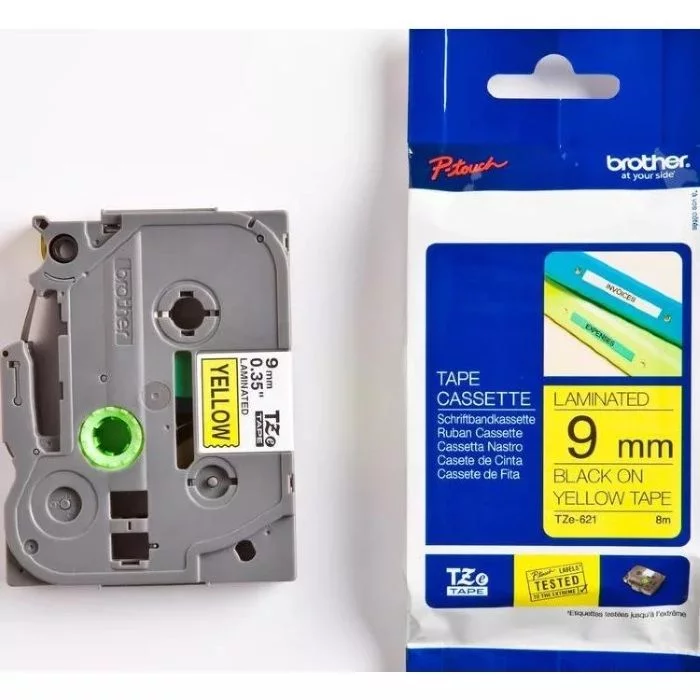 Картридж ленточный Brother TZE621, черный/ желтый, 9 мм., лента для Brother P-Touch