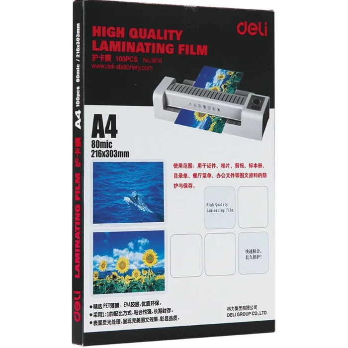 Пленка для ламинирования Deli глянцевая A (4216x303 мм), 80 мкм,100 шт. (E3816)
