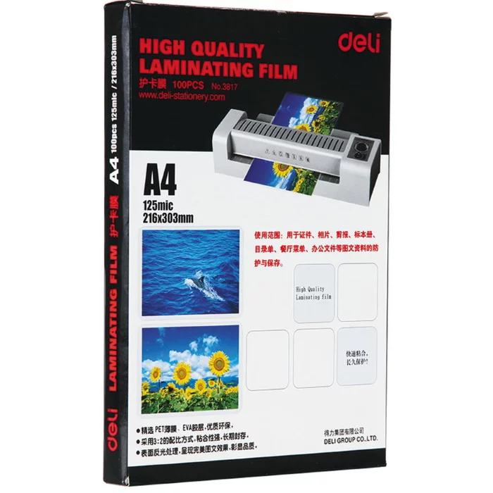 Пленка для ламинирования Deli глянцевая A4 (216x303 мм) 125 мкм, 100 шт. с клеящим слоем (E3817)