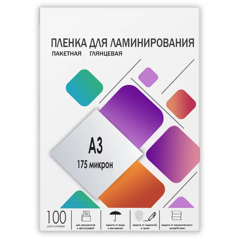 Пленка 303х426 (175 мик) 100 шт./ Пленка для ламинирования A3, 303х426 (175 мкм) глянцевая 100шт, ГЕЛЕОС [LPA3-175]