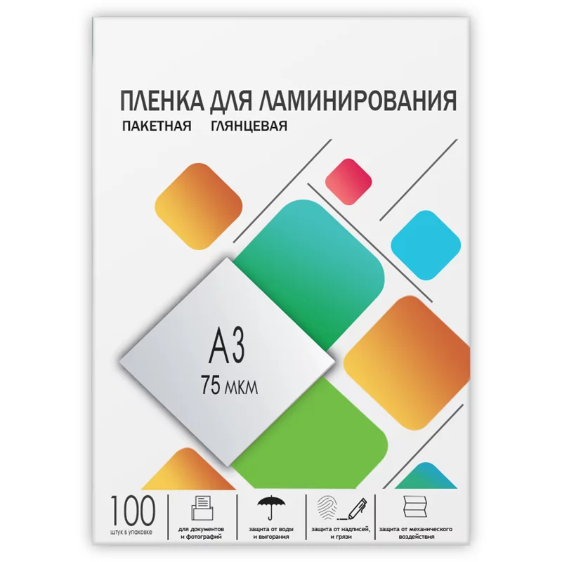 Пленка 303х426 (75 мик) 100 шт./ Пленка для ламинирования A3, 303х426 (75 мкм) глянцевая 100шт, ГЕЛЕОС [LPA3-75]
