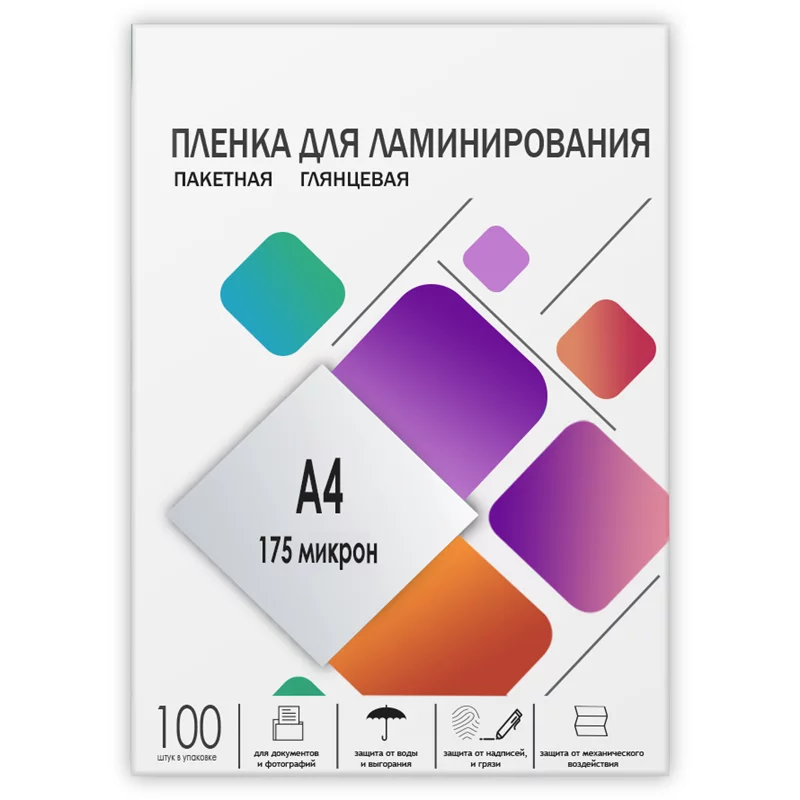 Пленка 216х303 (175 мик) 100 шт./ Пленка для ламинирования A4, 216х303 (175 мкм) глянцевая 100шт, ГЕЛЕОС [LPA4-175]