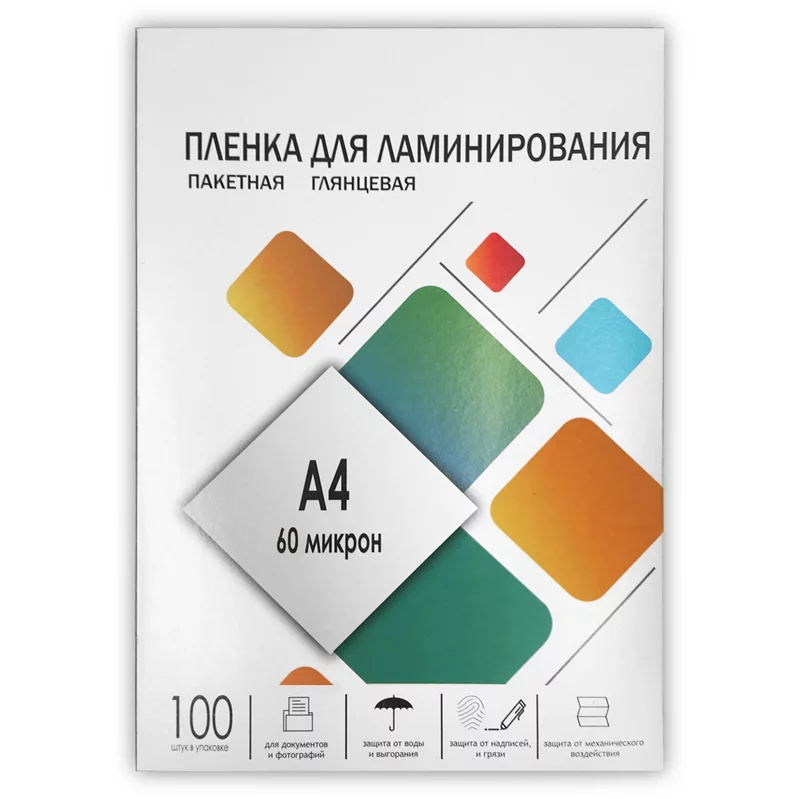 Пленка 216х303 (60 мик) 100 шт./ Пленка для ламинирования A4, 216х303 (60 мкм) глянцевая 100шт, ГЕЛЕОС [LPA4-60]