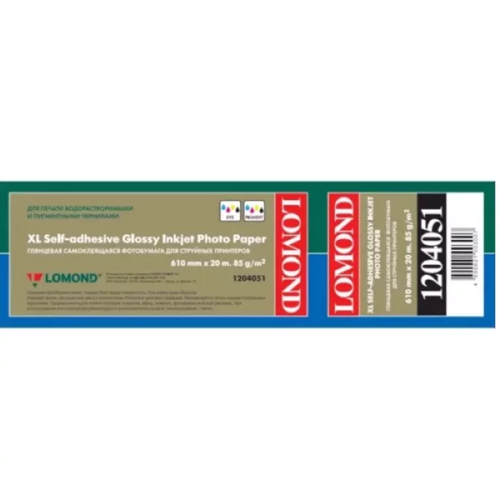 Фотобумага LOMOND XL Glossy Self-Аdhesive Photo Paper, самоклеящаяся, ролик 610мм х50 мм, 85 г/м2, 20 метров. (1204051)