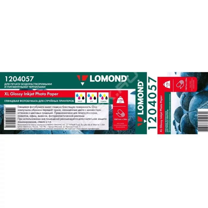 Бумага LOMOND глянцевая односторонняя для широкоформатной печати 1067 мм х 30 м/ 170г/м2/ втулка 2" 50.8 мм (1204057)