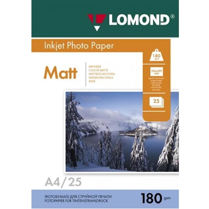 Фотобумага Lomond 0102037 A4/ 180г/ м2/ 25л./ белый матовое для струйной печати