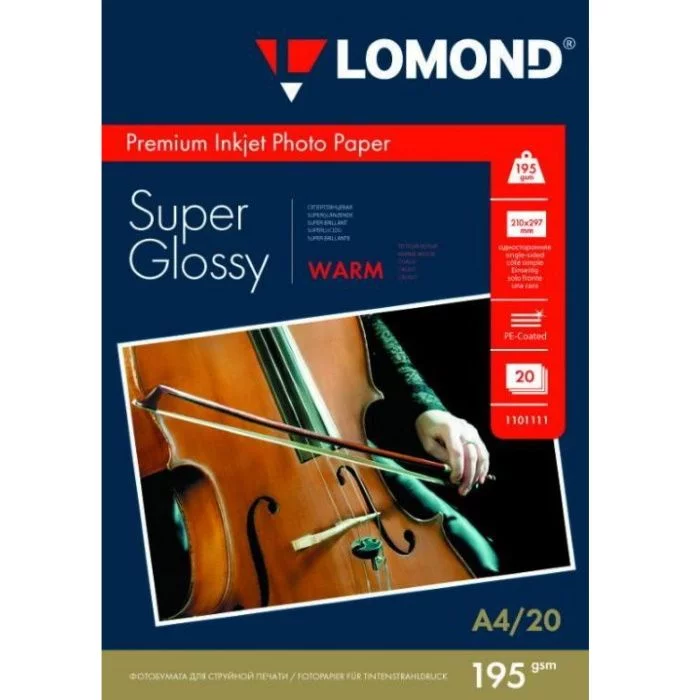 Фотобумага LOMOND cуперглянцевая тепло-белая микропористая, A4/ 195 г/м2/ 20 л (1101111)