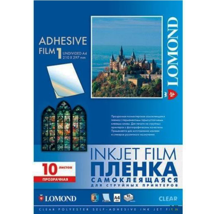 Пленка Lomond, самоклеящаяся, прозрачная, неделенная, А4 для струйной печати (2700003)