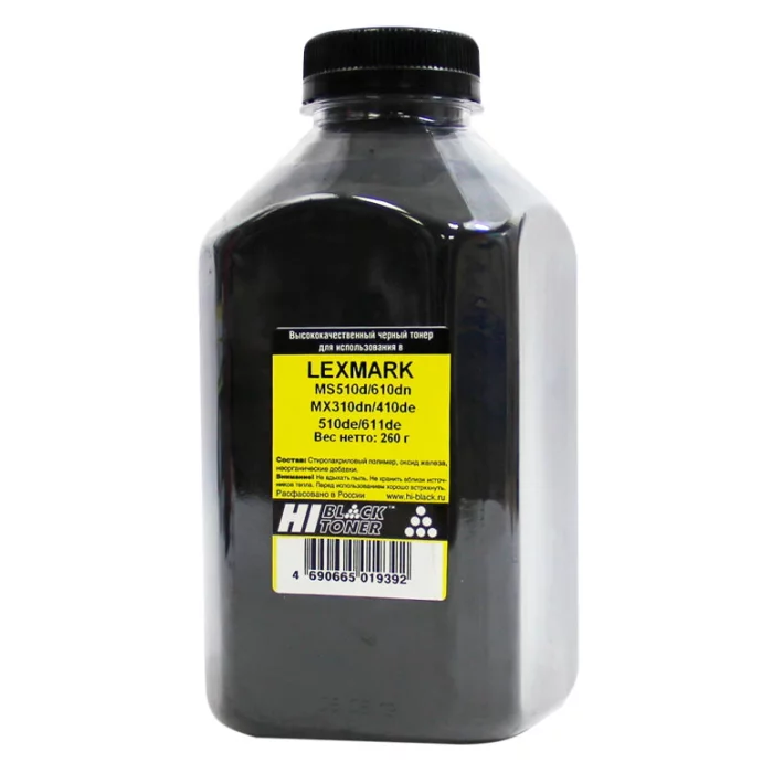 Тонер Hi-Black Bk, 260 г. (для Lexmark MS510d/ 610dn, MX310dn/ 410de/ 510de/ 611de) (4010715508272)