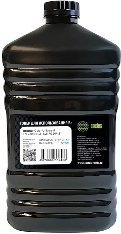 Тонер Cactus CS-TBRCHUC-500 голубой флакон 500гр. для принтера Brother Color Universal TN-230/241/213/217/320/421