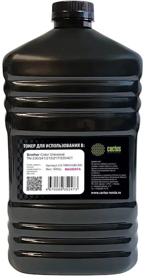 Тонер Cactus CS-TBRCHUM-500 пурпурный флакон 500гр. для принтера Brother Color Universal TN-230/241/213/217/320/421